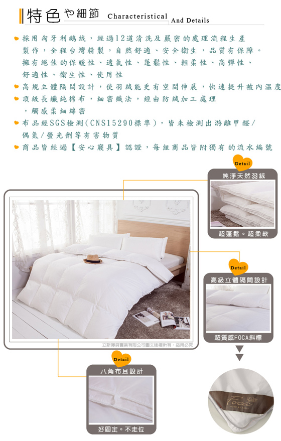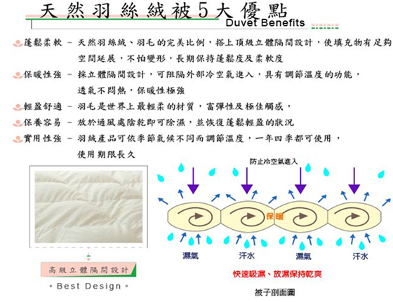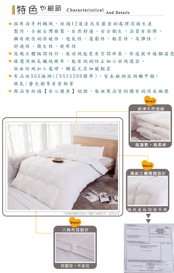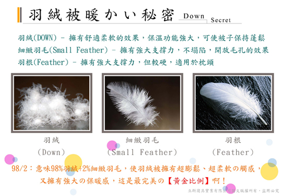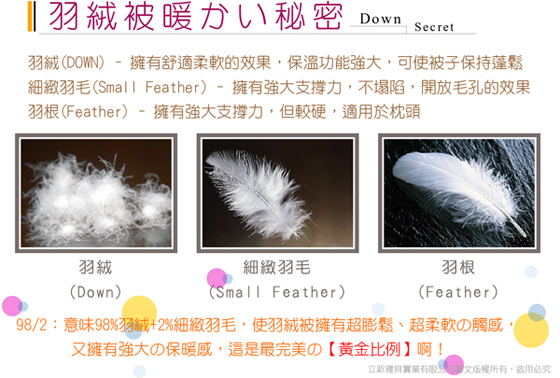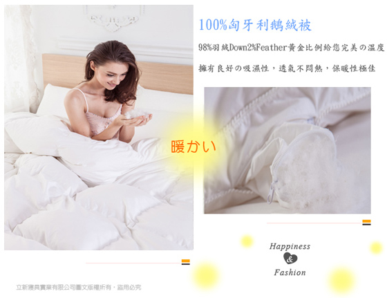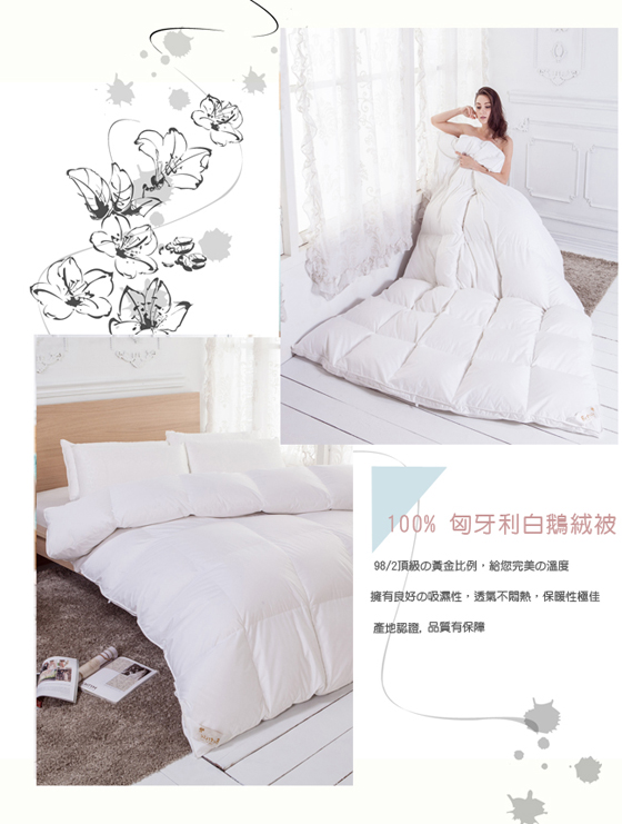 五、頂級爵品98D匈牙利白鵝絨被(被套100支紗)